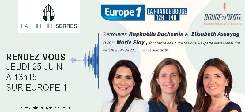 Tous les jours sur Europe 1 "La France bouge" une interview permettant de présenter une innovation et une coach vous conseille... L'atelier des Serres a présenté sa gamme de serres de jardin pour les restaurateurs en période post-covid.